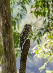 Keywords: marbled frogmouth podargus ocellatus bird feathers owl orange eyes perched rainforest native wild queensland australia