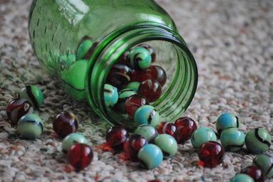 Keywords: marbles jar marble glass white bright green color red yellow container transparent clear stone colorful collection spill shiny chaos smooth round