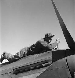 | Keywords: Marcellus G. Smith, Louisville, KY, 100th F.S., Ramitelli, Italy.jpg Photograph en Crew chief Marcellus G Smith Louisville KY 100th F S Ramitelli Italy March 1945 Photograph shows crew chief Marcellus G Smith of Louisville Kentucky 100th F S working on an airplane Source Tuskegee Airmen 332nd Fighter Group pilots accession number LC-DIG-ppmsca-13257 digital file from original neg Call Number LC-F9-02-4503-318-01 item P P LOT 12447-1 Corresponding print Repository Library of Congress Prints and Photographs Division Washington D C 20540 USA Also available as contact sheet in LOT 12447-1 Title devised by Library staff Forms part of Toni Frissell Collection Library of Congress LOC-image ppmsca 13257 Rights Advisory No known restrictions on publication <gallery> Marcellus g smith louisville ky 100th fs tif tif </gallery> Toni Frissell http //www loc gov/rr/print/res/070_fris html 332d Fighter Group United States Army Air Forces Toni Frissell |