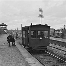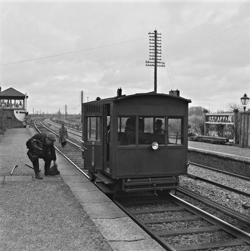 | Keywords: straffan train station straffantrainstation train station trainstation railway station railwaystation inspection car inspectioncar signal box signalbox signal cabin signalcabin tracks sleepers platform workers straffan kildare ireland leinster railways railroads trains telegraph pole telegraphpole friday 31st march 1961 1960s sixties c.i.é cié coras iompair éireann corasiompairéireann james p. o'dea jamespodea headlamp national library of ireland nationallibraryofireland o'dea photographic collection odeaphotographiccollection monochrome blackandwhite outdoor railroad train vehicle black and white An Inspection Car at Straffan Train Station, Co. Kildare. Date: Friday, 31 March 1961 NLI Ref.: ODEA 24/92 An Inspection Car at Straffan Train Station, Co. Kildare. Date: Friday, 31 March 1961 NLI Ref.: ODEA 24/92 |