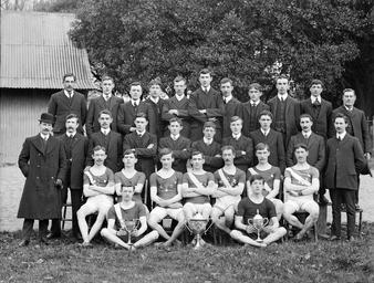| Keywords: harriers sport sportsmen medals cups shorts plimsolls moustaches suits watch chains watchchains silver sports running prizes sunday march 1910 1910s ireland munster a.h. poole ahpoole arthur henri poole arthurhenripoole poole collection poolecollection glass negative glassnegative bowler hat bowlerhat coke hat cokehat spikes cycle track cycletrack people's park peoplespark king of spring kingofspring 6th 20th century 20thcentury waterford national library of ireland nationallibraryofireland goff track gofftrack blackandwhite monochrome team sport people outdoor black and white Harriers in Waterford. This award-winning group, by the looks of the medals and cups, was photographed at the behest of a Mr Farrell. As the photo was taken on a Sunday, presumably this was on the day of a competition... Date: Sunday, 6 March 1910 NLI Ref.: P_WP_2011 Harriers in Waterford. This award-winning group, by the looks of the medals and cups, was photographed at the behest of a Mr Farrell. As the photo was taken on a Sunday, presumably this was on the day of a competition... Date: Sunday, 6 March 1910 NLI Ref.: P_WP_2011 |