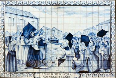 Keywords: Marcha da fome.jpg 2006-02-06 own assumed Juntas Azulejos in Sacavém 20th-century azulejos Blue and white azulejos Azulejos of people Azulejos of females Azulejos of buildings