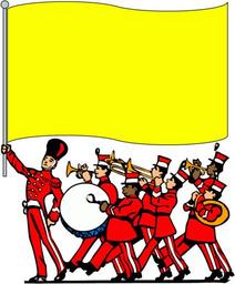 Keywords: marching band parade drum banner sign message music horns trumpets marching