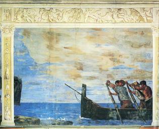 Keywords: Marées, affresco, Stazione zoologica, Napoli (3).jpg Das Boot Nordwand Mitte 1873 Fresco Stazione zoologica Anton Dohrn Biblioteca dell'acquario Naples Italy 20004157710 PD-old-100 Frescos by Hans von Marées Acquarium of Naples