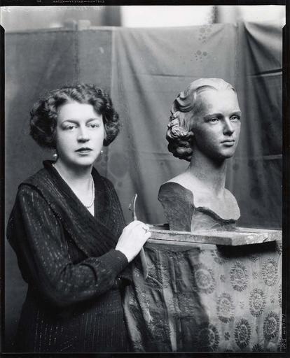 View Original:Margaret_French_Cresson,_American_sculptor,_1889-1973,_standing_beside_bust_of_Nathalie_Osborn.jpg (1051x1300)