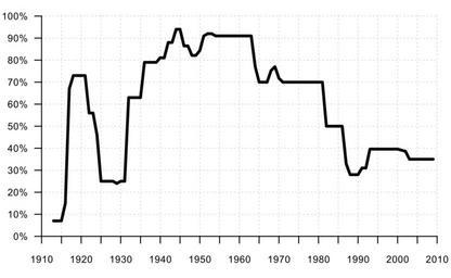 | Keywords: MarginalIncomeTax.svg en Plot of top bracket from U S Federal Marginal Income Tax Rates for 1913 to 2009 Data are from http //en wikipedia org/wiki/Income_tax_in_the_United_States History_of_progressivity_in_federal_income_tax own IGTaylor 2009-08-24 Created in R Code available on request cc-zero Personal income taxes in the United States Marginal tax rates |