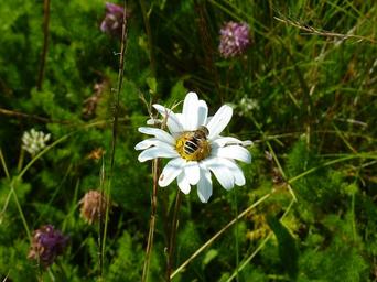 Keywords: marguerite bee honey forage pollen nature insect pollinator honey bee foraging plant