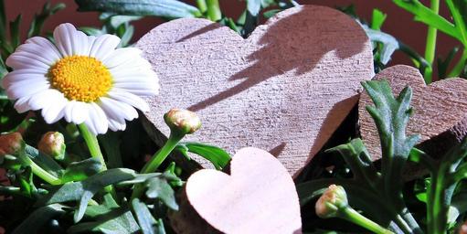 Keywords: marguerite flower plant spring summer white yellow wooden heart heart wood background blossom bloom