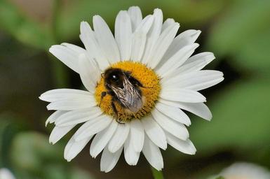 Keywords: marguerite hummel flower insect close blossom bloom summer yellow white