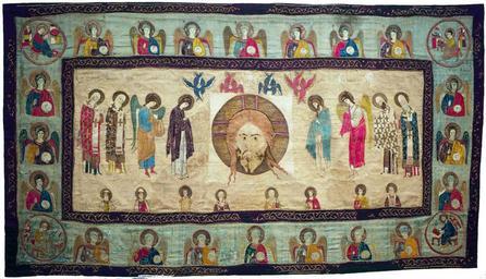 | Keywords: Maria Alexandrovna's Spas, pelena (1389, GIM).jpg «Спас е укотво ный с п едстоящими» Воздух 1389 г ГИ Инв 15494 РБ-1 ате иал Тафта камка атлас шелковые п яденые золотные и се еб яные нити П оисхождение Поступил из соб ания П И Щукина Разме 123 х 220 асте ская великой княгини а ии Александ овны XIV в Сох анность и естав ация Шитье во многих местах ут ачено Под выпавшими нитями виден исунок художника нанесенный се ой и озовой к аской По всему воздуху чинки и заплаты Описание а с еднике по тафте золотисто-песочного цвета азноцветными шелками в аскол вышит Спас на уб усе с п едстоящими ему в молитвенных позах слева - Богомате ью а хангелом ихаилом мит ополитами Пет ом и Алексеем; сп ава - Иоанном П едтечей а хангелом Гав иилом мит ополитами аксимом и Феогностом Внизу восемь поясных п ямоличных фигу - князья Глеб и Бо ис Алексей - человек Божий икола Г иго ий Богослов мученик икита Дмит ий Солунский и князь Владими а каймах по голубой итальянской камке вышиты поясные ангелы и а хангелы с ме илами и зе цалами в уках; по углам в к угах - пишущие евангелисты имбы п яденого золота имбы п яденого золота Конту ы фигу и складки одежд описаны се еб яной нитью О намент окаймляющий с едник и к ая воздуха шит золотом по темно-фиолетовому атласу Именующие надписи над фигу ами и литу гическая надпись на ве хней и нижней каймах шиты телесным шелком сливающимся с фоном Такая же и вкладная надпись в т и ст оки в левом нижнем углу с едника «в лет 6897 уна шитъ быс сии вдухъ повеленьеим великиия княгини м ьи семеновыя» Конту ы фигу и складки одежд описаны се еб яной нитью О намент окаймляющий с едник и к ая воздуха шит золотом по темно-фиолетовому атласу Именующие надписи над фигу ами и литу гическая надпись на ве хней и нижней каймах шиты телесным шелком сливающимся с фоном Вышивальщицы с большим масте ством сумели пе едать и тонкий вы азительный лик Спаса и изящные легкие фигу ы п едстоящих ему и живописные позы евангелистов Ритмичное ст огое пост оение композиции ее замкнутость подче кивают темно-фиолетовые полосы с тонким золотым узо ом и оп еделенные че едования цвета одежд ангелов по кайме Цветовое ешение кайм более насыщенное чем с едника Здесь кинова ь в сочетании с васильково-синим сменяется желтым и фиолетово-ко ичневым; тогда как на цент альном изоб ажении много белого и палевого Этим также достигается оп еделенная художественная вы азительность ажо ное цветовое звучание п оизведения подче кивает его эпическое то жественное соде жание http //lib pstgu ru/icons/index2 php option com_content view article id 89379120 1389 асте ская великой княгини а ии Александ овны а ия Александ овна дочь Александ а ихайловича великого князя тве ского Ум 1399 уж - Симеон Иванович Го дый Files uploaded by Shakko from various sources Pelena 1389 Embroidery in Moscow State Historical Museum 14th-century art in the Moscow State Historical Museum Embroidery of Russian tsarinas and Grand Duchess 14th-century Russian orthodox embroidery PD-old-100 |