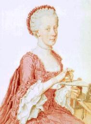 | Keywords: Maria Amalia of Habsburg Lorraine.gif Maria Amalia of Austria 1762 by Liotard jpg Artwork Creator Jean-Étienne Liotard en Archduchess Maria Amalia of Austria Duchess of Parma and Piacenza wife of Duke Ferdinand I of Bourbon-Parma and daughter of Holy Roman Emperor Franz I Stephan of Lorraine and Empress Maria Theresia of Austria Pastellemälde Archduchess Maria Amalia shown here at her embroidery resisted her mother ™s arrangements for a politically advantageous marriage The empress prevailed and in 1769 Maria Amalia was married to Ferdinand of Bourbon Duke of Parma 1751 “1802 Very active in the political affairs of her new home she left Parma after her husband ™s death in 1802 and died in Prague in 1804 Ritratto di Maria Amalia d'Austria duchessa di Parma e Piacenza 1762 pastel Red and black chalk graphite pencil and watercolor on thin paper heightened with color on the verso Institution Musée d'Art et d'Histoire Geneva Cabinet des Dessins http //web archive org/web/20050419084049/http //www ville-ge ch/musinfo/mahg/publics/pages/boite_outils/jeux/mariet htm http //www frick org/sites/default/files/archivedsite/exhibitions/liotard/exhibition htm other versions PD-old-100 DEFAULTSORT 1762; MªAmalia of Austria Empress Maria Theresa ™s Children Liotard series 04 Drawings of sitting females Archduchess Maria Amalia of Austria Duchess of Parma 18th-century portrait drawings of women at half length Engageantes in art Females doing needlework in portraits Female hair fashion in art Females with chokers in art Portraits of sitting women Red clothing in art female |