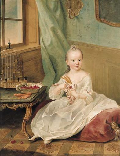 | Keywords: Maria Anna von Pfalz-Zweibrücken mi9t Vogelkäfig.jpg Artwork Creator Johann Georg Ziesenis Christian IV von Pfalz-Zweibrücken Maria Anna 1753 “1824 Tochter von Friedrich Michael von Pfalz-ZweibrückenBirkenfeld spätere Gattin des Herzogs Wilhelm in Bayern 1757 Oil on canvas cm 137 106 unknown Christie's online 3322035 6450 770 other versions PD-old-100 DEFAULTSORT 1757; Maria Anna von Pfalz-Zweibrücken Johann Georg Ziesenis 18th-century portrait paintings location missing House of Palatinate-Zweibrücken 1750s dresses 1757 oil on canvas paintings Portrait 1757 portrait paintings from Germany 18th-century oil portraits of girls at full length 18th-century portrait paintings in interiors 18th-century portrait paintings with birds 18th-century women of Germany Bird cages in art Cushions in portrait paintings Female shoes in portrait paintings Females with white dresses in art Portrait paintings of sitting girls Portrait paintings of girls with birds Portraits with fruits Tables in portrait paintings |
