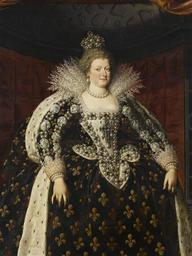 | Keywords: Maria de' Medici Frans Pourbus the Younger (detail).jpg Artwork creator Frans Pourbus II Maria de' Medici in full regalia She was the wive of Henry IV of France Detail d'une portrait de Marie de Médicis la reine de Henri IV Dettaglio di un ritratto de Maria de' Medici Portet van Maria de Medici in vol ornaat Zij was de echtgenote van Hendrik IV van Frankrijk between 1609 1610 oil canvas cm 307 186 Institution Louvre not on view accession number INV 1710 object history Provenance ca 1789 1799 acquisition LangSwitch Unknown Inconnu Onbekend LangSwitch Unknown Inconnu Onbekend LangSwitch Probably ceded during the French Revolution Probablement cédé au cours de la Révolution française Waarschijnlijk afgestaan tijdens de Franse Revolutie <br> ProvenanceEvent 1815 purchase Chambre des Pairs Paris ProvenanceEvent 1816 transfer Louvre Department of Paintings Paris Chambre des Pairs Paris credit line 4908 Louvre Paris http //cartelen louvre fr Website Catalogue Louvre http //cartelen louvre fr/cartelen/visite srv car_not_frame idNotice 4908 langue en Webpage http //cartelen louvre fr/pub/en/image/6112_p0006870 001 jpg Picture thumb left LangSwitch Version in the Rijksmuseum Amsterdam Version dans la Rijksmuseum Amsterdam Versie in het Rijksmuseum Amsterdam PD-old-100 Maria de' Medici by Frans Pourbus II M Flemish paintings in the Louvre Pourbus Frans 2 Flemish paintings in the Louvre - not on display Pourbus Frans 2 1600s paintings in the Louvre 17th-century oil portraits of women 1610 Maria de' Medici 17th-century portrait paintings in the Louvre 1610 Maria de' Medici Ermine clothing in art Farthingales Fleur-de-lis in portrait paintings Women with jewellery in art People with crowns in art 1600s portrait paintings |