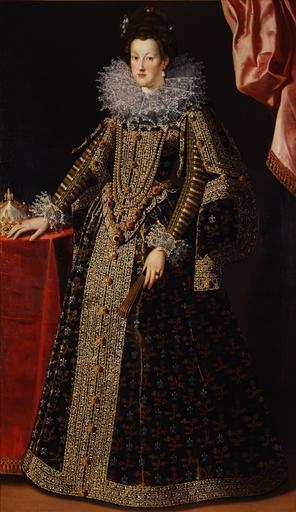 | Keywords: Maria de' Medici, Queen of France in circa 1600 by an unkown artist.jpg Artwork Creator Santi di Tito otherdate c 1601 Oil on canvas size cm 192 109 Institution Palazzo Pitti Galleria Palatina http //www altesses eu/princes206 php <gallery>Santi di Tito - Portrait of Maria de' Medici - WGA22720 jpg</gallery> PD-old-100 DEFAULTSORT 1601c; Maria de' Medici by Tito Santi di Tito 17th-century portrait paintings in the Galleria Palatina Florence Renaissance paintings in the Galleria Palatina Florence Portrait paintings of Maria de' Medici 1600s paintings in Italy 1600s portrait paintings from Italy 1601 portrait paintings 17th-century oil portraits of standing women at full length Fleur-de-lis in portrait paintings French royal crown in art Lace ruffs in art Portrait paintings of standing women with hands resting on tables Portrait paintings of women with crowns Portrait paintings with Spanish composition Portraits with fans Red drapery in portrait paintings Spanish saya court dress |