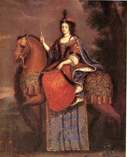 | Keywords: Maria Kazimiera Sobieska.jpg  Poland Equestrian portrait of Queen Marie Casimire s 1670 Oil on canvas cm 51 40 8 Institution Wilanów Palace Museum Wil 1686 http //www poloniatoday com/images/History14-4 jpg www poloniatoday com other versions <gallery>Anonymous Marie Casimire on horseback jpg</gallery> PD-old-100 DEFAULTSORT 1670s; Queen Marie Casimire 17th-century unidentified painters 17th-century portraits in the Wilanów Palace Portraits of Maria Kazimiera Sobieska 1670s oil on canvas paintings 1670s paintings from Poland 1670s paintings in Poland 1670s portrait paintings 17th-century oil equestrian portraits of women Baroque painters from Poland Baroque paintings of women Baroque portraits of women Coronation portraits of Poland Feathered headdresses in art female Females with pearl necklaces in art Portraits holding sceptres 17th-century women looking at viewer in art People in three-quarter views in art Paintings of people wearing hats Paintings of women with horses Equestrian portraits of queens |