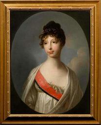 | Keywords: Maria Pavlovna of Saxe-Weimar-Eisenach by Tischbein (GIM).jpg Artwork Creator Johann Friedrich August Tischbein ru По т ет великой княгини а ии Павловны доче и Павла I ге цогини Саксен-Вейма ской decade 1800 Oil on canvas Size cm 50 5 64 5 Institution State Historical Museum object history exhibition history credit line accession number И I 3120 place of creation http //213 85 18 114/kng/item/item jsf PD-old-100 cite web Инфо мационно-сп авочная система по коллекциям ИСС КА ИС http //213 85 18 114/kng/item/item jsf Госуда ственный Исто ический музей Portraits of Maria Pavlovna Grand Duchess of Saxe-Weimar-Eisenach 4 Files uploaded by Shakko from various sources Johann Friedrich August Tischbein 19th-century portraits in the Moscow State Historical Museum Romanovs 19th-century oil portraits of women 1800s oil on canvas paintings in Russia Sash of the Order of St Catherine in portrait paintings |