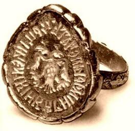 | Keywords: Maria Temryukovna's ring.jpg Пе стень-печать ца ицы а ии Тем юковны Россия 1560-1569 До еволюции он х анился в соб ании О ужейной палаты а ныне находится в коллекции Госуда ственного исто ического музея Пе стень использовался в качестве печати - известна его п о исовка сделанная для книги А Б Лакие а «Русская ге альдика» Следует заметить что эта п о исовка часто восп оизводящаяся в азличных изданиях неточна Щиток пе стня имеет неп авильную яйцевидную фо му а внешней сто оне ободка сох анились остатки о намента В цент е на щитке пе стня помещено изоб ажение двуглавого о ла Этот о ел в целом подобен о лам конца XV - пе вой половины XVI в в том числе и о лу с блюда К ылья о ла аск ыты но опущены клювы п иотк ыты но языков в отличие от п о исовки Лакие а не видно Четко обозначен хвост о ла состоящий из пяти пе ьев Лапы о ла довольно к упные пальцы астопы ены на каждой лапе по четы е пальца ко оны на головах о ла лишь обозначены небольшими т еугольниками Сам азме вещи конечно же не позволял езчику пе едать все детали но некото ые элементы получились весьма вы азительными Вок уг цент ального изоб ажения идет легенда наве ху точка затем «ц цi и великiи кнгнi а ьi печать» некото ые буквы соединены лигату ами буква «в» написана как в позднем полууставе Вообще надпись п оизводит впечатление более а хаичной по стилю г афики нежели надпись на блюде что объясняется по-видимому особенностями того мате иала с кото ым п иходилось иметь дело масте ам Изоб ажение о ла как видим также отличается от его официального сф агистического ва ианта но соответствует уп ощенному ва ианту п едметов деко ативно-п икладного ха акте а По всей видимости такой ва иант учитывая сф агистическую функцию пе стня отличающийся от изоб ажения ге ба на ца ской печати был наиболее подходящим для печати ца ицы http //2008 president-kbr ru/pda/450/ id 682 aktiv 4 scan 19th century photo anonymous Russian museum photo PD-old Maria Temryukovna Signet rings Jewellery in Moscow State Historical Museum 16th-century jewellery Files uploaded by Shakko from various sources Coats of arms of the Tsardom of Russia Seals of medieval Russia 16th-century Russian inscriptions 16th-century art in the Moscow State Historical Museum Jewellery of Russian Tsardom |