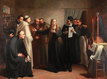 | Keywords: Mariana Pineda en capilla 1862 Juan Antonio Vera Calvo.jpg El lienzo representa a Mariana Pineda 1804-1831 en capilla en vísperas de su ejecución y en el momento en el que se dirigía al patíbulo Fue condenada a muerte en 1831 durante el reinado de Fernando VII de España por sus ideas liberals y fue ajusticiada en el garrote vil a los veintiséis años el día 26 de mayo de 1831 Sus restos reposan en la actualidad en la cripta de la catedral de Granada 1862 Oil on canvas Institution Palacio de las Cortes Madrid http //www congreso es/docu/transp/patri/mariana_capilla jpg PD-old-100 other versions Uploaded with UploadWizard Mariana Pineda Paintings in the Palacio de las Cortes Juan Antonio Vera Calvo 1862 paintings 19th-century paintings in Spain |