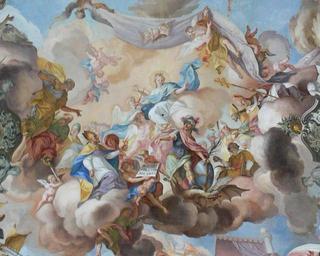 | Keywords: Marienmünster Dießen Langhausfresko detail 3.jpg Marienmünster Dießen ehem Augustiner-Chorherren-Kirche Mariä Himmelfahrt heute Pfarrkirche Dießen am Ammersee <br /><br /> Fresko über dem Chor bzw Altarraum von Johann Georg Bergmüller 1736 Maria als Himmelskönigin verehrt von den Schutzpatronen der Dießener Klöster Hl Augustinus von Hippo Hl Georg Hl Stephanus Hl Martin von Tours Hl Petrus und Hl Paulus Creator Johann Georg Bergmüller own 2008-04 Photo Andreas Praefcke Own work all rights released Public domain Vaults of Marienmünster Dießen Frescos of Marienmünster Dießen |