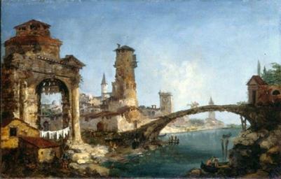 | Keywords: Marieschi Fantastic landscape with ruins.jpg workshop of s 1730 oil canvas cm 36 5 57 Institution National Museum Warsaw 1 accession number 184840 object history ProvenanceEvent transfer National Museum in Warsaw State Art Collections Warsaw credit line Muzeum Narodowe w Warszawie 1956 Wystawa malarstwa włoskiego w zbiorach polskich XVII-XVIII w Muzeum Narodowe pp 75 128 Jan Białostocki Maria Murdzeńska Danuta Książkiewicz Jan Kuglin 1969 Catalogue of paintings foreign schools Vol 1 National Museum in Warsaw cat no 750 p 254 http //www dwutygodnik com pl/public/media/2009_13/image/cb1de34fd07a7d0211447e70617f jpg www dwutygodnik com pl See below PD-old-100 DEFAULTSORT 1730s; Fantastic landscape with ruins Paintings by Michele Marieschi in the National Museum in Warsaw Stone arch bridges in art Paintings of ruins Fantastic landscapes |