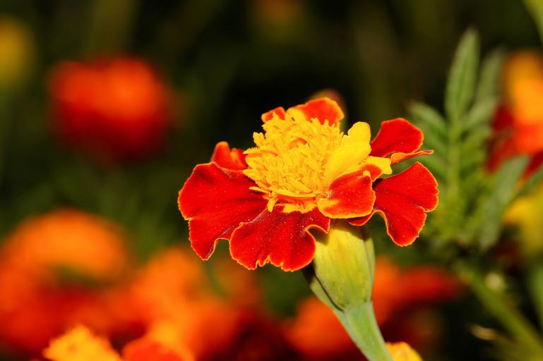 Keywords: marigold flower blossom bloom red yellow bright colorful summer