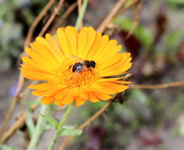 Keywords: marigold yellow fly yello flower nature bug summer spring