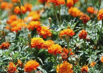 Keywords: marigold flower blossom closeup natural vibrant green floral spring petal yellow field botanical growing bright orange summer bloom blurred season garden growth plant blur beautiful background fresh wild nature