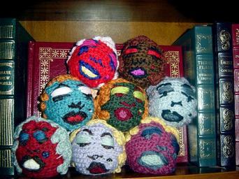 Keywords: Marilyns.jpg en Inspired by Warhol's Marilyns Own Roseycakes 9/11/2008 Amigurumi Derivative works on Andy Warhol Marilyn Monroe in art
