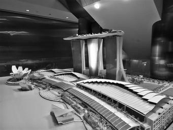 | Keywords: architecture bâtiment front de mer frontdemer gratte-ciel gratteciel marina bay sands marinabaysands marina bay sands hotel marinabaysandshotel photography singapore singapour blackandwhite monochrome photo border black and white Le Marina Bay Sands est un énorme complexe hôtelier de Singapour comportant 2 560 chambres, un casino et un musée, situé face à Marina Bay. Imaginé par l'architecte Moshe Safdie, il a officiellement ouvert le 23 juin 2010. Il aurait coûté huit milliards de dollars. Il est formé de trois hôtels de 55 étages, surmontés d'une terrasse d'un hectare possédant la plus longue piscine en altitude du monde, avec un débordement de 146 m. Le casino, construit devant les tours, comporte 1 000 tables à jeu et 1 400 machines à sous. Le musée, en forme de lotus, a ouvert le 17 février 2011. Le Marina Bay Sands est un énorme complexe hôtelier de Singapour comportant 2 560 chambres, un casino et un musée, situé face à Marina Bay. Imaginé par l'architecte Moshe Safdie, il a officiellement ouvert le 23 juin 2010. Il aurait coûté huit milliards de dollars. Il est formé de trois hôtels de 55 étages, surmontés d'une terrasse d'un hectare possédant la plus longue piscine en altitude du monde, avec un débordement de 146 m. Le casino, construit devant les tours, comporte 1 000 tables à jeu et 1 400 machines à sous. Le musée, en forme de lotus, a ouvert le 17 février 2011. |