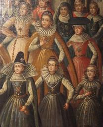 | Keywords: Marina Mniszech betrothal 03 detail.JPG Per procura nuptials of False Dmitri and Marina Mniszech in Kraków on November 12 1605 Ślub per procura Dymitra Samozwańca i Maryny Mniszchówny w Krakowie 12 listopada 1605 Заочное об учение а ины нишек с Лжедмит ием I в К акове 12 нояб я 1605 Creator Szymon Boguszowicz ca 1613 oil canvas State Historical Museum Moscow ru Русский Заочное об учение а ины нишек с Лжедмит ием I в К акове 12 нояб я 1605 еизвестный польский художник Szymon Boguszowicz Пе вая половина XVII века Холст; масло 155 х 230 Поступил в 1885 году да импе ато а Александ а III П оисходит из польского замка Вишневец п инадлежавшего фамилии нишек кото ый был п одан в 1852 году Один из его новых владельцев И Толли пода ил ка тину импе ато у Александ у III ГИ инв 8402 ИI-3469 Plafond ceiling painting from a coffered Venetian ceiling executed to adorn the so-called Family Room Sala Familii in the Laszki Murowane Castle The cycle originally consisted of 10 plafond paintings and 2 freize paintings on opposite walls depicting the story of Marina Mniszech Object history < 1613 commission Jerzy Mniszech and Jadwiga Tarło century 18 transfer Wiśniowiec Palace Shakko 2011 PD-Art ; CC-BY-SA-3 0 File Bethrotal of Marina Mniszech jpeg PD-old-100 cc-by-sa-3 0 Bethrotal of Marina Mniszech Exhibition Sainte Russie Moscow 2011 Uploaded by Shakko/Photos National costumes of Poland in 17th century Uploaded with UploadWizard |