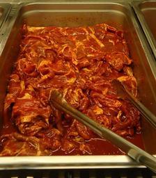 Keywords: Marinated pork sliced butt at Asian supermarket in New Jersey.jpg en Marinated pork sliced butt as seen in an Asian supermarket in New Jersey 2012-07-23 own Tomwsulcer cc-zero Uploaded with UploadWizard Pork-based food Marinated food