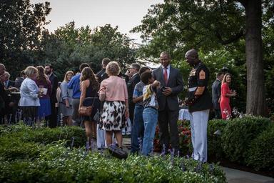 | Keywords: washington d.c. dc united states of america unitedstatesofamerica outdoor people The Sergeant Major of the Marine Corps, Ronald L. Green, speaks with guests during an Evening Parade reception at the Home of the Commandants, Washington D.C., July 10, 2015. Gen. Joseph Dunford Jr., commandant of the Marine Corps, was the hosting official for the July 10 Evening Parade, and the Guests of Honor were eight congressional Marines, to include Sen. Charles Roberts, Sen. Daniel Sullivan, Rep. John Kline, Rep. Michael Coffman, Rep. Scott Rigell, Rep. Paul Cook, Rep. Mike Bost, and Rep. Ruben Gallego. (U.S. Marine Corps photo by Sgt. Melissa Marnell/Released) The Sergeant Major of the Marine Corps, Ronald L. Green, speaks with guests during an Evening Parade reception at the Home of the Commandants, Washington D.C., July 10, 2015. Gen. Joseph Dunford Jr., commandant of the Marine Corps, was the hosting official for the July 10 Evening Parade, and the Guests of Honor were eight congressional Marines, to include Sen. Charles Roberts, Sen. Daniel Sullivan, Rep. John Kline, Rep. Michael Coffman, Rep. Scott Rigell, Rep. Paul Cook, Rep. Mike Bost, and Rep. Ruben Gallego. (U.S. Marine Corps photo by Sgt. Melissa Marnell/Released) |
