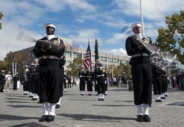 | Keywords: Marines and sailors participate in half-time ceremony during NFL game 121006-N-PB383-678.jpg en Members of the U S Navy Ceremonial Guard perform during a U S Navy Band concert at Jack London Square to honor East Bay Veterans as part of San Francisco Fleet Week 2012 San Francisco Fleet Week is scheduled from Oct 3-8 and brings more than 2 500 sailors Marines and Coast guardsmen from four ships to the city of San Francisco in order to highlight the personnel technology and capabilities of the sea services The U S Navy has a 237-year heritage of defending freedom and projecting and protecting U S interests around the globe Join the conversation on social media using warfighting U S Navy photo by Mass Communication Specialist 2nd Class Dominique Pineiro 2012-10-06 Seaman Dominique Pineiro https //www dvidshub net/image/719552 121006-N-PB383-678 2012-10-11 06 18 OAKLAND CA US PD-USGov-Military-Navy United States Navy Band Images from DoD uploaded by Fæ |