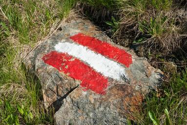 Keywords: mark red white red austria trail waymarks stone alpine hiking meadow nature trail signs directory marker characters
