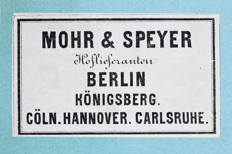 | Keywords: Märke, detalj. Foto till boken: Ett sekel av dräkt och mode ur de Hallwylska samlingarna - Hallwylska museet - 89359.tif JOHANNITERORDENSDRÄKTER <br/><br/>Bestående av delar av ordensdräkt för Ehrenritter samt ordensdräkt för Rechtsritter Delar av ordensdräkt för Ehrenritter Bestående av hatt epåletter med fodral värja med balja samt ett par sporrar <br/><br/>Hatt Av svart silkesfelb på styv stomme Trekantig vitplymascherad Agraff av guldbuljoner bestående av två spirallindade kantiljer lagda med krus den ena av förgylld rund metalltråd massiv den andra av oförgylld platt dylik tråd guldlan samt med en förgylld knapp med ordenskorset i silver Foder av vitt siden merveilleux Mått Vidd 56 cm Brätte längd 10 5 cm Epåletter axelstycken ett par med fodral Av metall i form av en oval skiva med rektangulär platt flik med fasade hörn Skivans sidor med stoppning Epålettens översida överklädd med guldtyg undersidan med röd ylleflanell På flikens översida en förgylld knapp med ordenskorset i vit emalj avnött på undersidan en mycket lång hake av mässing Axelholk av papp insidan överklädd med höggul sammet; på utsidan tätt vertikalt liggande guldbuljoner hårt dubbeltvinnade kantiljer Mått Längd 16 cm ; höjd 8 cm Fodral Av papp med trycklock samt på utsidan klätt med mörkt blågrönt knottrigt papper 8-formigt Locket fodrat med ljust blågrönt moirépapper lockets och fodralets kanter med likafärgat slätt papper Fodralets botten och sidor inuti vadderade samt fodrade med ljusgult fyrskaftat bomullstyg Under botten mörkblått papper Mått Höjd 10 cm ; längd 32 cm ; bredd 19 cm Värja med balja Klinga av stål blankpolerad tveeggad jämnt avsmalnande mot udden med sexsidigt tvärsnitt plana sidor och spetsig udd På klingans övre del i blankt mot mattetsad botten på vardera sidan akantusbladorneringar i tre grupper den övre och den nedre med en trofégrupp dessutom på mellersta gruppen på insidan preussiska örnen jämte ett i S-form gående skriftband varpå MIT GOTT F KÖNIG U VATERLAND Fäste av förgylld mässing Parerplåt hjärtformig skålig med bred ytterkant samt med den spetsiga ändan uppsvängd Mellan klingan och parerplåten två röda yllelappar Handbygel bågformig med ovalt tvärsnitt samt med nedre änden fortsättande på den bygeln motsatta sidan i en kort parerstång med tvär ytterände och avsmalnande inåt Kavel av trä spolformig med ovalt tvärsnitt samt lindad med höger- och vänstertvinnad grövre och finare tråd av silver Knapp långsträckt päronformig med övre ändan avslutad i en platt ändknapp på insvängd hög hals; på knappens utsida fritt pålagt i silver ordenskorset Mått Längd 0 95 m Klinga bredd vid fästet 1 5 cm Fäste längd 13 9 cm Balja Av svartlackerat läder med munbleck och släpsko av förgylld mässing Längs baksidan en grov spannad söm Munbleck och släpsko släta det förstnämnda med snett utvikt mynningskant samt på framsidan en nedåtriktad lång hake avsmalnande nedåt Mått Längd 0 81 m ; bredd 2 2 cm Munbleck längd 9 2 cm Släpsko längd 11 5 cm Sporrar spännsporrar ett par Av förgylld mässing Bygeln klackbågen med något uppsvängda skänklar trefasad utsida och platt insida samt avsmalnande utåt på vardera ändan en kullrig knapp på rakt utstående lång rundstavig hals Remmar saknas Mått Längd 12 5 cm ; bredd 10 9 cm Ordensdräkt för Rechtsritter Bestående av hatt mantel vapenrock livrem med gehäng värja med balja ordensband byxor stövlar sporrar med vristskydd block samt koffert med nycklar och överdrag Hatt Av svart styv filt med på sidorna uppviket brätte kantat med ett svart sidenmoiréband samt uppåt avsmalnande platt hög kulle nedtill denna en tjock snodd av förgylld metalltråd baktill med två öglor samt två tofsar av guldbuljoner tofshuvudet horisontalt lindat med dylika buljoner Framtill en vit och en svart lång strutsplym liggande över kullen och fäst under en kokard av hoprynkat svart sidenmoiréband varpå ordenskorset av vitt linnetyg Foder av vitt siden merveilleux ; svettrem av ljust beigefärgat getskinn baktill med en rosett av silkestrikåband i samma färg Mått Vidd 57 cm Kulle höjd 14 5 cm Brätte bredd 10 5 cm Mantel Av svart siden taft Hand- och maskinsydd Rektangulär i tre raka våder Övre kortsidan med fyra täta rynkrader utom på ett stycke vid vardera framkanten Foder av tunnare svart siden taft isytt med snoddade ytterkanter Halslinning smal dubbelviken Mått Längd 150 cm ; halsvidd 50 cm Vapenrock Av scharlakansrött kläde med knappar av förgylld koppar Livskuren tvåradig med tre par knappar Framstyckenas kanter passpoaler av vitt kläde Axelklaffar flätade av galonband i guld och med ordenskorset samt fodrade med rött kläde Krage rockslag ärmuppslag jämte skörtklaffar av vitt kläde Krage hög dubbelviken rockslag stora tresidiga ärmuppslag höga skörtklaffar konturerade de senare vardera med tre knappar jämte en smal guldgalon de övriga med en bred och en smal dylik Knappar runda kupiga med ordenskorset i relief baksidan av vit metall med en rundstavig ögla På vänstra framstycket en kort horisontal uppslitsning med fällklaff för värjan därovanför fyra horisontala silkesstränsar ordensfästen Foder av vitt siden i detsamma under vardera bakskörtet en ficka Mått Ärmhålsdjup 23 cm ; livlängd 42 cm ; längd hel 76 cm ; ryggbredd halv 18 cm ; ärmlängd 78 cm ; bröstvidd fram 44 cm ; bröstvidd hel 100 cm ; livvidd 90 cm Livrem med spänne och värjgehäng Remmen av grovt läder på utsidan ett pålagt band vävt av fina guldtrådar bildande fem längdgående flacka stavar omväxlande med smala ränder i hålmönster; insidan fodrad med rött kläde; remmens ena ände trubbvinklig på denna en fyrsidig sölja av mässing fastsydd med en kort läderflik samt avsedd för en på livremmens insida befintlig smal rem med mörkröd utsida och nio spännhål samt med innerändan fas