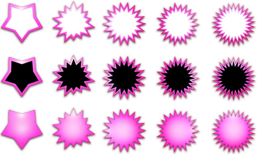 Keywords: marketing ad promotion banner set star burst star burst pink black colorful icon art label isolated design collection button blank deal sale open new