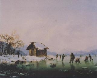 | Keywords: Markus Pernhart - Wörthersee bei Loretto mit Eisläufern2.jpeg Artwork Creator Markus Pernhart ~ 1850 oil canvas 32 x 39 5 cm private collection accession number object history credit line repro from artbook PD-old-100 <gallery> File Markus Pernhart - Wörthersee bei Loretto mit Fischerhütte und Eisläufern2 jpg </gallery> Landscape paintings by Markus Pernhart Ice skating in art Paintings of the Wörthersee | ||||