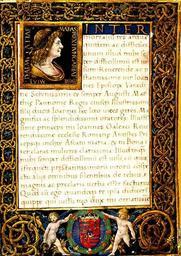 | Keywords: Marlianus Mediolanensis Ioannes Franciscus Epithalamium in nuptiis Blancae Mariae Sfortiae et Iohannis Corvini.jpg hu Kódexoldal Hunyadi Mátyás mellképével és címerével Giovanni Francesco Marliano Epitalamium in nuptiis Blancae Mariae Sfortiae et Johannis Corvini című múve A kódex Marlianus milánói szenátor Corvin János és Maria Bianca Sforza eljegyzése alkalmából elmondott üdvözlő beszédét tartalmazza Az egykor a Corvina Könyvtárhoz tartozó könyv díszítését Ambrogio de Predis lombard miniátor készítette 1488 körül Pergamen tempera és arany; a lap mérete 21x15 cm Volterra Biblioteca Guarnacci Cod Lat 5518 IV 49 3 7 fol 5r Marlianus Mediolanensis Ioannes Franciscus Epithalamium in nuptiis Blancae Mariae Sfortiae et Iohannis Corvini http //matyasmesek oszk hu/pics html pic galeria/it_bibl_guarnacci_codlat5518_iv_49_3_7_fol5r jpg txt 3Cb 3EK C3 B3dexoldal+Hunyadi+M C3 A1ty C3 A1s+mellk C3 A9p C3 A9vel+ C3 A9s+c C3 ADmer C3 A9vel 3C/b 3E 3Cbr 20/ 3E 3Cbr+ 2F 3E++++A+k C3 B3dex+Marlianus+mil C3 A1n C3 B3i+szen C3 A1tor+Corvin+J C3 A1nos+ C3 A9s+Maria+Bianca+Sforza+eljegyz C3 A9se+alkalm C3 A1b C3 B3l+elmondott+ C3 BCdv C3 B6zl C5 91+besz C3 A9d C3 A9t+tartalmazza + 3Cbr+ 2F 3E++++Az+egykor+a+Corvina+K C3 B6nyvt C3 A1rhoz+tartoz C3 B3+k C3 B6nyv+d C3 ADsz C3 ADt C3 A9s C3 A9t+Ambrogio+de+Predis+lombard+mini C3 A1tor+k C3 A9sz C3 ADtette+1488+k C3 B6r C3 BCl 3Cbr+ 2F 3E++++Pergamen 2C+tempera+ C3 A9s+arany 3B+a+lap+m C3 A9rete+21x15+cm 3Cbr+ 2F 3E++++Volterra 2C+Biblioteca+Guarnacci 2C+Cod +Lat +5518 +IV +49 +3 +7 2C+fol +5r 3Cbr+ 2F 3E++++Marlianus+Mediolanensis 2C+Ioannes+Franciscus 3A+Epithalamium+in+nuptiis+Blancae+Mariae+Sfortiae+et+Iohannis+Corvini 3Cbr+ 2F 3E Ambrogio de Predis cc 1488 Bibliotheca Corviniana Humanistic script PD-old-100 |