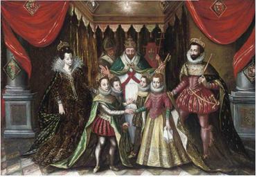| Keywords: Marriage of Louis XIII by follower of A. Sanchez Coello.jpg Follower of Alonso Sánchez Coello The double marriage of Louis XIII of France with Anne of Austria and Philip Prince of Asturias with Elizabeth of France oil on canvas 33 5/8 x 48 in 85 5 x 122 cm http //www christies com/lotfinder/paintings/follower-of-alonso-sanchez-coello-the-double-5461365-details aspx This double marriage took place in 1615 Follower of Alonso Sánchez Coello Wedding of Louis XIII of France and Anne of Austria Files uploaded by Shakko from various sources Alonso Sánchez Coello Unidentified locations in Christchurch PD-old |