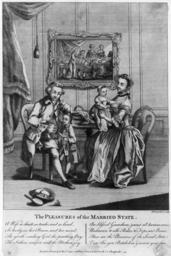 | Keywords: Married-state-ca1780.jpg A panegyric on the happiness and Pleasures of the Married State published in London ca 1780 A father teaches his son reading while his wife holds their daughter A painting of Christ changing water into wine at the wedding-feast of Cana is shown on the wall while an outdoors hat and equipment for battledore/shuttlecock i e the precursor to badminton are on the floor Poem in image A Wife so chaste so tender and so kind So lovely in her Person and her mind; The gentle smiling Girl the pratling Boy The Father's comfort and the Mother's joy Are blessed Guardians 'gainst all human woes Unknown to idle Rakes to Fops and Beaus; These are the Pleasures of the Social state View this you Batchelors and mourn your fate For a caricature from the same period expressing the opposite point of view see File Les plaisir du mènage by James Gillray jpg ---- Bibliographic information found on the LoC site TITLE The pleasures of the married state / W Proud del et sculp CALL NUMBER PC 2 - Pleasures of the married state A size P P REPRODUCTION NUMBER LC-USZ62-59621 b w film copy neg No known restrictions on publication SUMMARY Print shows a family gathering around a table the husband seated is instructing a son who stands next to him with an open book and the wife seated opposite holds an infant daughter the children mimic the parent's costume; in the background is a painting of Jesus changing water to wine during the wedding feast Includes eight lines of verse promoting marriage MEDIUM 1 print engraving CREATED/PUBLISHED London Printed for Robt Sayer in Fleet Street Jno Smith in Cheapside between 1770 and 1789 NOTES Title from item Forms part of British Cartoon Collection Library of Congress SUBJECTS Marriage--England--1770-1790 Families--England--1770-1790 Domestic life--England--1770-1790 FORMAT Cartoons Commentary British 1770-1790 Engravings British 1770-1790 REPOSITORY Library of Congress Prints and Photographs Division Washington D C 20540 USA DIGITAL ID b w film copy neg cph 3b07363 http //hdl loc gov/loc pnp/cph 3b07363 CARD 2003675451 Edited from image on Library of Congress website at http //memory loc gov/master/pnp/cph/3b00000/3b07000/3b07300/3b07363u tif<br> http //hdl loc gov/loc pnp/cph 3b07363 ~ 1780 W Proud PD-old-100 Marriage in art Love in art Families in art 18th-century fashion 18th-century way of life Badminton in art |