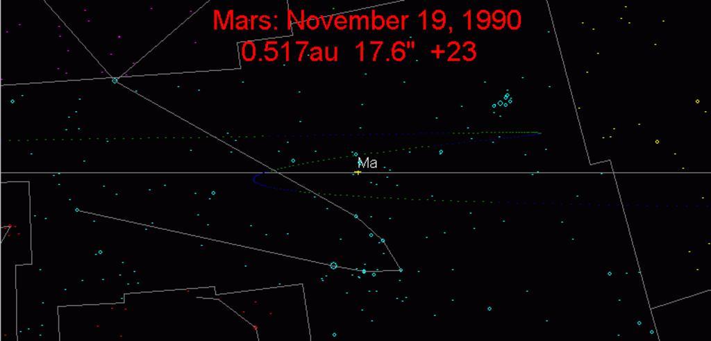 | Keywords: Mars path 1990.png en wikipedia 2011 October 18 Mars path in the sky during opposition 1990 Every dot represents one day of motion thumb Full Sky logo 2007-09-28 Own Tomruen wikipedia en Tomruen Original upload log page en wikipedia Mars_path_1990 png 2007-09-28 22 10 Tomruen 793×380 11339 bytes <nowiki> Summary Mars path in the sky during opposition 1990 Every dot represents one day of motion thumb Full Sky logo Licensing </nowiki> Star charts | ||||