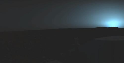 | Keywords: Mars Viking 12a240.png Viking 1 lander image of a martian sunset over Chryse Planitia In this image the sun is 2 degrees below the local horizon The banding in the sky is an artifact produced by the incremental brightness levels of the camera This image was taken on the 30th martian day sol after touchdown at 19 13 local time 10 40 31 on 20 August 1976 UTC The camera is pointing towards the southwest Own work based on images in the http //pdsimg jpl nasa gov/data/vl1_vl2-m-lcs-2-edr-v1 0/vl_0001/ NASA Viking image archive 2009-01-24; original photos were taken 1976-08-20 Roel van der Hoorn Van der Hoorn I used the original http //pdsimg jpl nasa gov/data/vl1_vl2-m-lcs-2-edr-v1 0/vl_0001/a2xx/12a240 blu 12a240 blu http //pdsimg jpl nasa gov/data/vl1_vl2-m-lcs-2-edr-v1 0/vl_0001/a2xx/12a240 grn 12a240 grn and http //pdsimg jpl nasa gov/data/vl1_vl2-m-lcs-2-edr-v1 0/vl_0001/a2xx/12a240 red 12a240 red images from the http //pdsimg jpl nasa gov/data/vl1_vl2-m-lcs-2-edr-v1 0/vl_0001/a2xx/ NASA Viking image archive converted them to png manually removed the noise merged them into one image almost matching true color; see here for the channel mixing process and finally increased the brightness with 35 Except for the conversion this was done in Adobe Photoshop CS2 The original file by NASA is in the public domain and so is this new one I created this image as a replacement for the image Viking sunset jpg see also http //nssdc gsfc nasa gov/imgcat/html/object_page/vl1_12a240 html here This file was created by NASA but the quality was not very high Using the original pictures from the Lander archive resulted in a higher quality image Van der Hoorn The image is based on an original image from NASA to which the following copyright statement is applicable PD-USGov-NASA Viking mission Sunset on Mars Chryse Planitia |