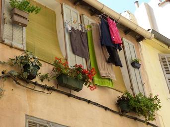 Keywords: marseille france mediterranean city south of france bowever building alley flower box laundry clothes line old town historically