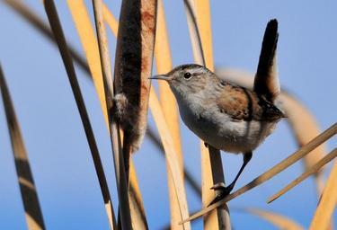 Keywords: marsh wren bird wildlife nature outdoors perched portrait cattail little