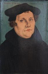 | Keywords: Martin Luther by Lucas Cranach.jpg low quality Artwork Creator Lucas Cranach I 1530 lime cm 38 2 24 8 Institution Jagdschloss Grunewald http //cranach ub uni-heidelberg de/wiki/index php/CorpusCranach Luther _Bora _Melanchthon CC-POR-500-060 cranach ub uni-heidelberg de<br>http //www lucascranach org/object php obj DE_SPSG_GKI50476_FR-none uid 9340 page 1 fol 01_Overall img DE_SPSG_GKI50476_FR-none_2006_Overall tif Cranach Digital Archive accession number GKI50476 object history exhibition history credit line langSwitch Artist's insignia over his right shoulder serpent with elevated wings <br/>At the upper edge IN SILENCIO ET SPE ERIT FORTITVDO VESTRA <small> In quiet trust in me you will be strong Is 30 15 </small> à ber der rechten Schulter bezeichnet mit dem Schlangensignet mit stehenden Flügeln<br/>Am oberen Bildrand IN SILENCIO ET SPE ERIT FORTITVDO VESTRA <small>aus Jes 30 15 Im Schweigen und Hoffen wird eure Stärke sein </small> Friedländer Rosenberg 1978 - own PD-old-100 DEFAULTSORT Cranach Lucas 1; Martin Luther 1530; Grunewald Portrait paintings of Martin Luther by Lucas Cranach I 1530 Grunewald Paintings in Jagdschloss Grunewald Uploaded with UploadWizard Taken with Praktica luxmedia 12-Z4 |