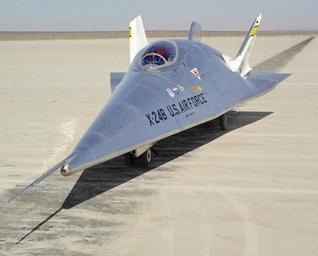 | Keywords: martin marietta x-24b x24b research aircraft nasa usaf lifting body liftingbody outdoor The X-24 was one of a group of lifting bodies flown by the NASA Flight Research Center (now Dryden Flight Research Center) in a joint program with the U.S. Air Force at Edwards Air Force Base in California from 1963 to 1975. The lifting bodies were used to demonstrate the ability of pilots to maneuver and safely land wingless vehicles designed to fly back to Earth from space and be landed like an airplane at a predetermined site. The X-24B's design evolved from a family of potential reentry shapes, each with higher lift-to-drag ratios, proposed by the Air Force Flight Dynamics Laboratory. To reduce the costs of constructing a research vehicle, the Air Force returned the X-24A to the Martin Marietta Corporation (as Martin Aircraft Company became after a merger) for modifications that converted its bulbous shape into one resembling a "flying flatiron" -- rounded top, flat bottom, and a double delta planform that ended in a pointed nose. First to fly the X-24B was John Manke, a glide flight on 1 August 1973. He was also the pilot on the first powered mission 15 November 1973. Photo replaced on 19 Sep 2016 with a larger version. The X-24 was one of a group of lifting bodies flown by the NASA Flight Research Center (now Dryden Flight Research Center) in a joint program with the U.S. Air Force at Edwards Air Force Base in California from 1963 to 1975. The lifting bodies were used to demonstrate the ability of pilots to maneuver and safely land wingless vehicles designed to fly back to Earth from space and be landed like an airplane at a predetermined site. The X-24B's design evolved from a family of potential reentry shapes, each with higher lift-to-drag ratios, proposed by the Air Force Flight Dynamics Laboratory. To reduce the costs of constructing a research vehicle, the Air Force returned the X-24A to the Martin Marietta Corporation (as Martin Aircraft Company became after a merger) for modifications that converted its bulbous shape into one resembling a "flying flatiron" -- rounded top, flat bottom, and a double delta planform that ended in a pointed nose. First to fly the X-24B was John Manke, a glide flight on 1 August 1973. He was also the pilot on the first powered mission 15 November 1973. Photo replaced on 19 Sep 2016 with a larger version. |