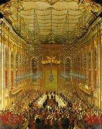 | Keywords: Martin van Meytens 017.jpg School of en Court banquet in the Redoutensaal on the occasion of the marriage of Joseph II and Isabella of Bourbon-Parma > 1760 Oil on canvas Institution Schönbrunn Palace http //text habsburger net/module/die-oeffentliche-tafel-2013-ein-augenschmaus-fuer-die-menge/die-oeffentliche-tafel/MB-ST_R1-MOD6-01 jpg/ size preview plus 1 other versions PD-old-100 Martin van Meytens Paintings in the Palace of Schönbrunn Wedding of Joseph II Holy Roman Emperor and Princess Isabella of Parma Paintings of Joseph II Holy Roman Emperor 18th-century oil on canvas paintings in Austria Paintings of banquets Events at the Hofburg Großer Redoutensaal |