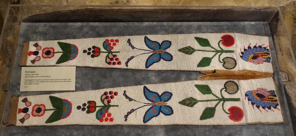 Keywords: Martingale, Siksika, mid 1900s, glass beads, canvas, hide backing - Glenbow Museum - DSC00987.JPG en Exhibit in the Glenbow Museum 130 9th Ave S E Calgary Alberta Canada This work is old enough so that it is in the public domain Photography was permitted in the museum without restriction 2013-09-21 12 38 54 own Daderot cc-zero Uploaded with UploadWizard Indigenous cultures in the Glenbow Museum Siksika clothing |
