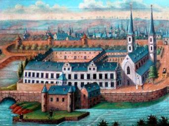 Keywords: Martinskloster 1750.JPG en St Martin's Abbey in the German town Trier Painting from the 18th century de Abtei St Martin in Trier Gemälde aus dem 18 Jahrhundert 1750 PD-old-100 Martinskloster