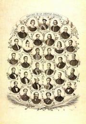 | Keywords: MartiresDeLaLibertadEspañola.jpg es Mártires de la libertad española Grabado Litografía de J Donon Tamaño 857 x 615 mm Lugar de impresión Madrid Bajo cada retrato inscripción con el nombre del personaje y datos sobre la forma lugar y fecha de la ejecución Personajes Díaz Porlier Juan Burillo Luis 1793-1824 Pineda Mariana 1804-1831 Solís y Cuetos Miguel 1816-1846 Maldonado Pedro m 1522 Lanuza Juan de ca 1564-1591 Zurbano Martín 1788-1845 Sorolla Guillén m 1521 Guardia Miguel de la 1807-1841 El Empecinado 1775-1825 Padilla Juan 1490-1521 Bravo Juan ca 1483-1521 Barrera José m 1848 Zurbano Benito m 1845 Copeiro del Villar León m 1857 Fernández Vallín Benjamín Beltrán de Lis Félix m 1819 Valterra Juan de Dios m 1848 Richart Vicente m 1816 López Vázquez Ramón m 1848 Iglesias Pablo 1792-1825 Manzanares Salvador 1790-1831 Miyar Antonio m 1831 Torrijos José María de Acuña Antonio de 1459-1526 López Marcelino m 1848 Riego Rafael del 1784-1823 Lacy Luis de 1775-1817 Jimeno Vicenta m 1522 Diola Agustín m 1848 Clavijo Joaquín m 1848 Biblioteca Nacional de España Santiago Llanta y Guerin 1869 People of Granada History of Granada 19th-century women of Spain Women of Spain Mariana Pineda 1869 in Spain Lithographs by Julio Donón Martin Zurbano Luis Lacy y Gautier PD-old-100 |